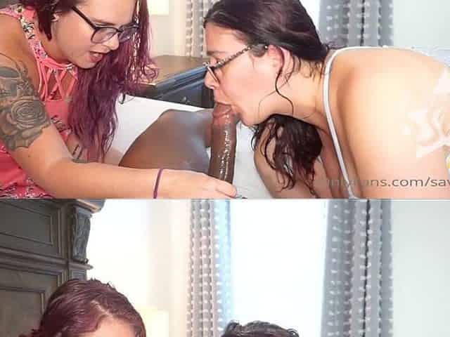 Explicit Kait in glasses is sucking black monster cock
