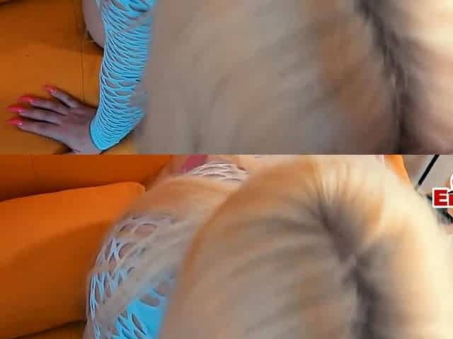 Cute Blond With Glasses Does Hard Anal Doggy Style And Receives A Facial