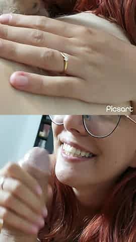 Hot Redhead Gives Oil-blindfolded Erotic Massage, Deep Blowjob and Explosive Cumshot on Face and Glasses