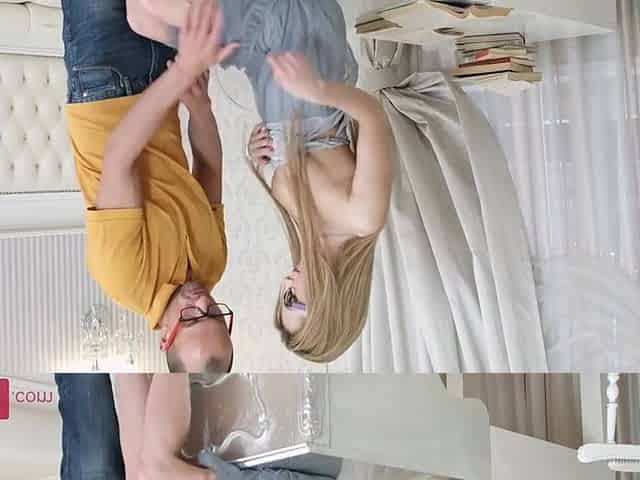 Old pussylicking lover lets 21yo with glasses ride his cock