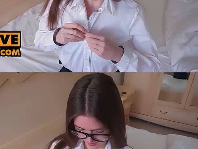 Skinny Girl With Glasses Sucks And Gets Pounded Live At