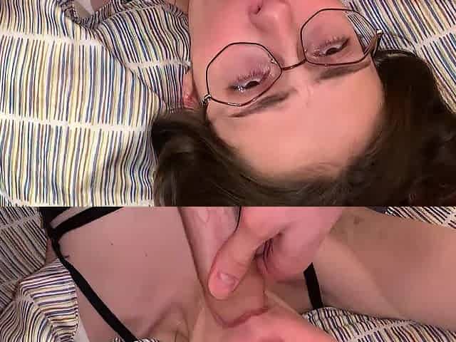 Cum-thirsty nerdy schoolgirl with glasses blows and swallows POV cumshot