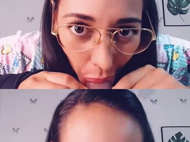 Nerdy Slut Gets Her Eye Glasses Covered In Cum After Repeatedly Sucking And Jerking Off Cock