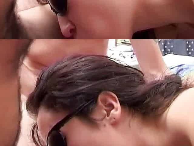 Amateur brunette in sunglasses screwed and filmed by a group of swingers - 2 scenes in video