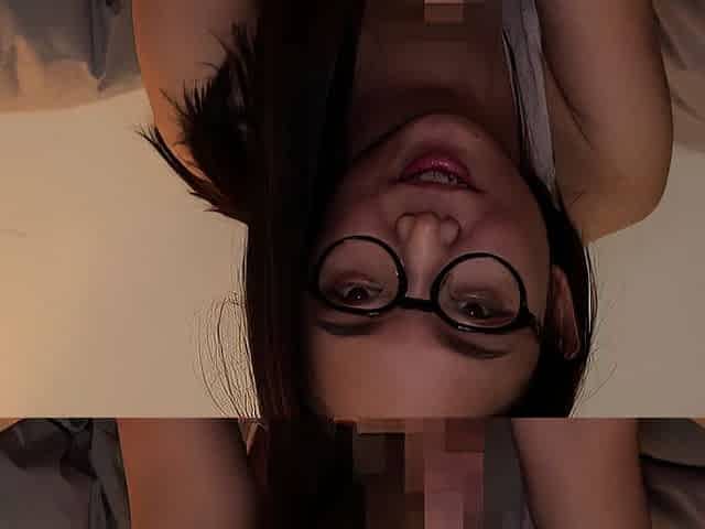 Brunette with sexy glasses, fast POV blowjob and strong facial