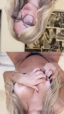 Amateur Babe in Glasses jerks cock for facial