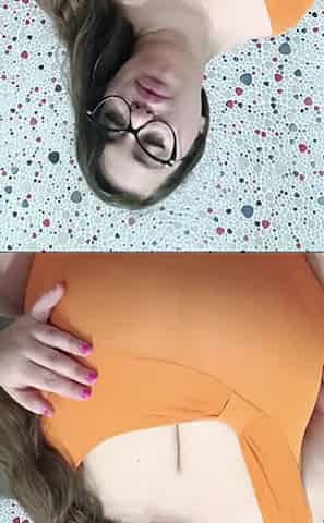Amateur redhead Jacqueline with glasses masturbates