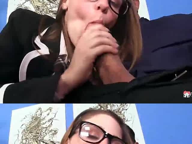 Hot blonde secretary gives a mouthwatering blowjob and swallows cum