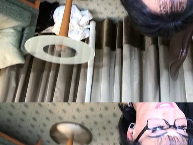 Nerdy, German brunette hair is wearing glasses whilst getting drilled hard, in front of the web camera