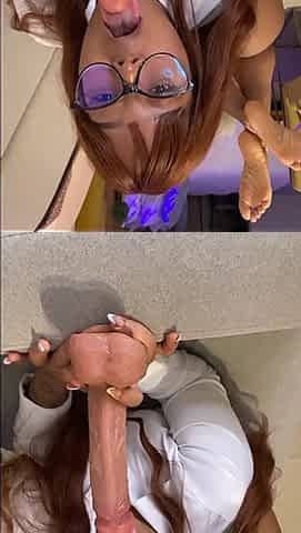 Amateur Babe in Glasses Loves a Messy Blowjob