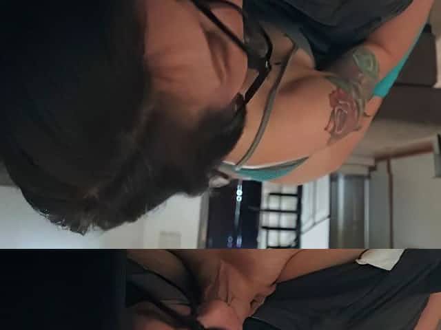 Tattooed Brunette With Glasses Gets Screwed In The Living Room