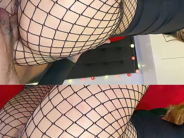 Je mets ma tenue résille pour baiser avec mon homme, il finit par jouir sur mes lunettes