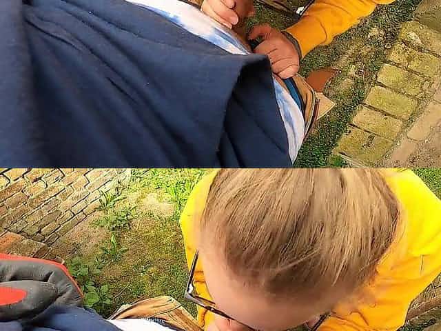 Amateur golden-haired with large, ebony glasses is having anal sex in the midst of the day