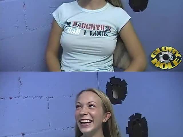 Amateur blonde broad is in a glory hole room for the first time
