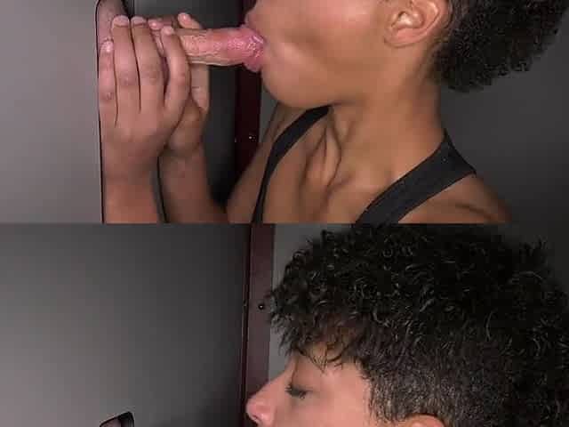 Sage Hunter's first gloryhole cock sucking session