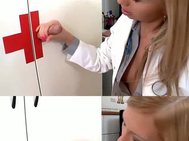 Blonde babe sucking a large dick thru a gloryhole - Vanessa Cage