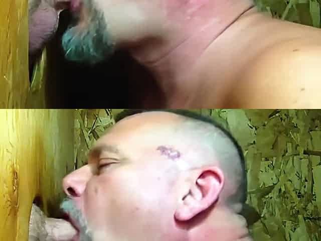 Old slut tapes the way kinky busty blondie sucks dick through glory hole