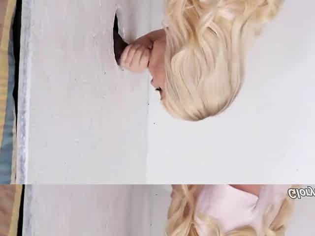 Gloryhole interracial fuck session with a blonde Riley Reign