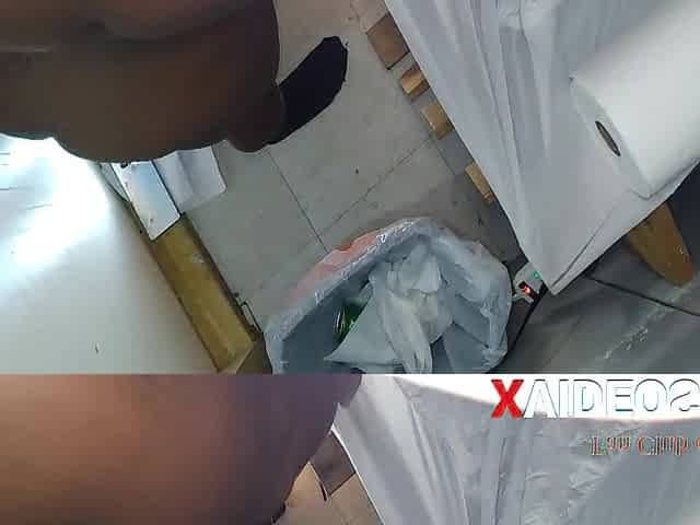 Busty Ebony MILF gives handjob & blowjob through public toilet gloryhole