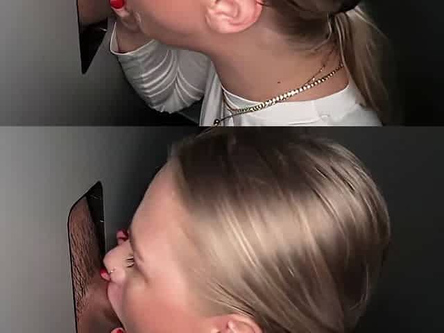 Pretty Blonde Gives A Blowjob Through The Glory Hole P1