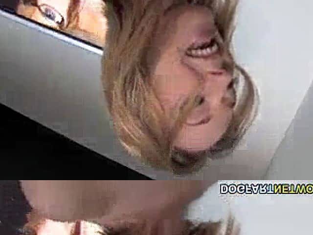 Gloryhole fun with a beautiful blonde chick sucking a black cock