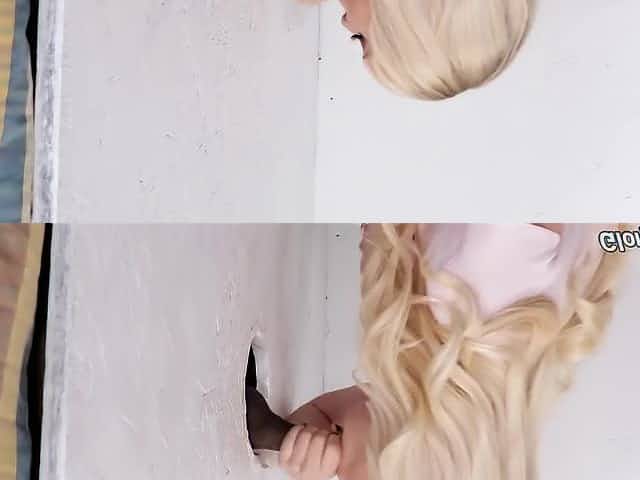 Sexy blonde girl Chloe Addison blows a fat dick thru a gloryhole