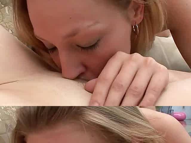 Blonde sexy lesbian sluts use new vibrator on each other
