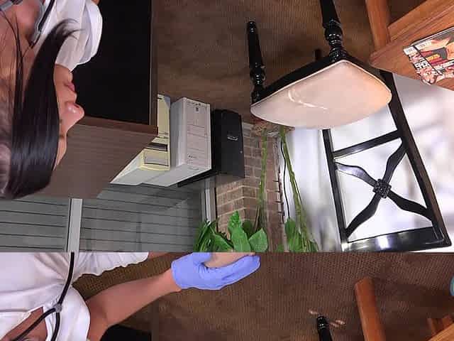 Role-playing stepsister masturbates for stepbrother pussy in medical gloves and gets an orgasm
