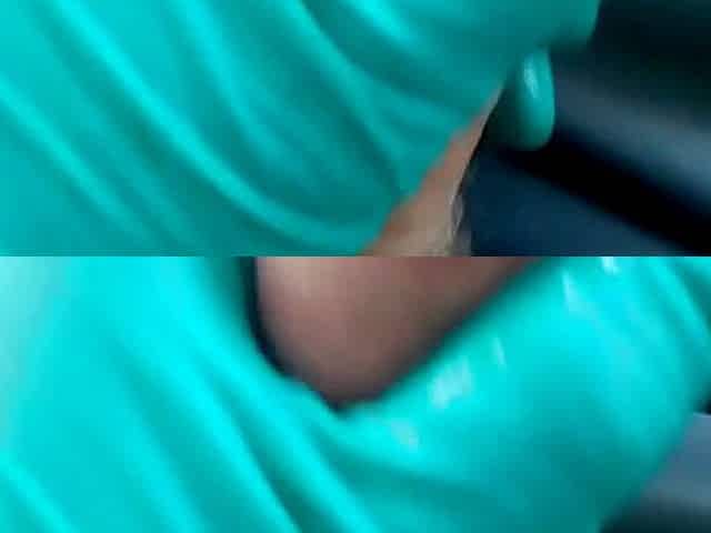 Latex gloves stuff pussy and ass and masturbate
