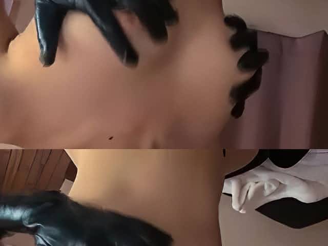 Sexy Babe In Latex Gloves Jerks Off Her Boyfriend With Her Hands And Feet