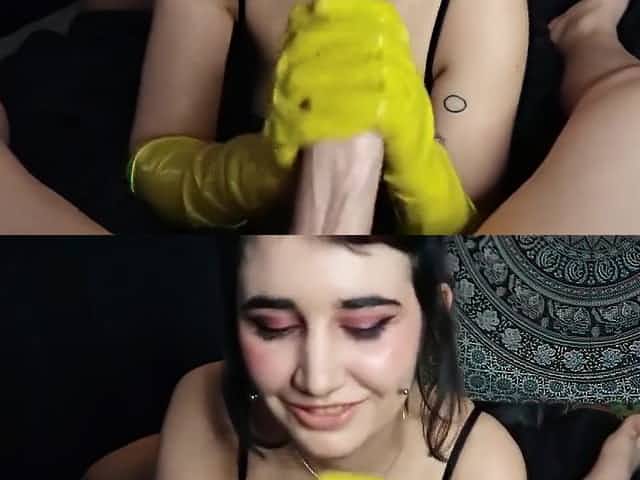yellow rubber gloves handjob