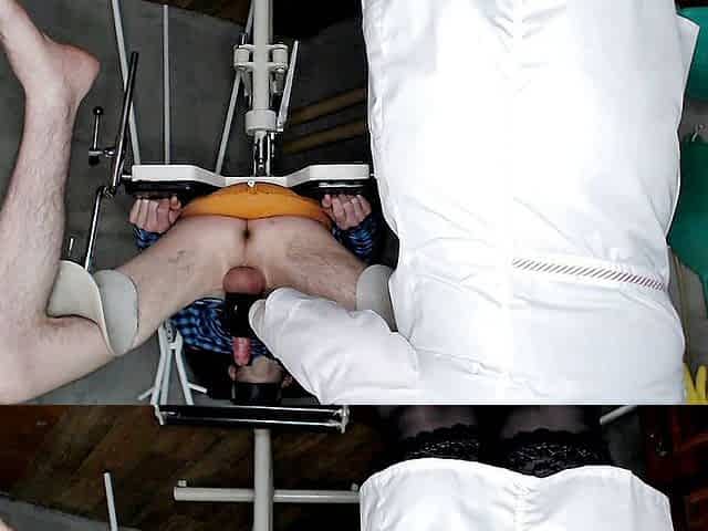 Anal fisting on the gyn chair: Nurse Sandra opens the ass of Marcus Pollack