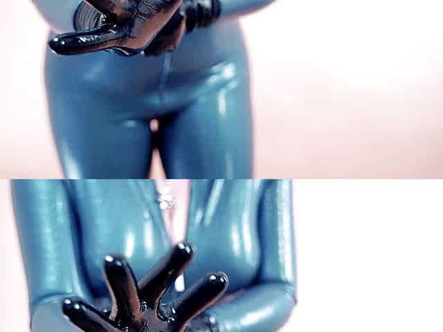 Wearing latex rubber catsuit teasing fetish
