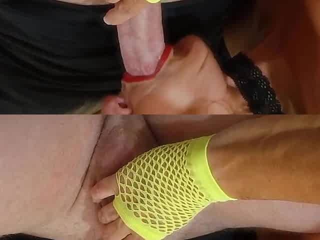 Blowjob and handjob in latex and gloves