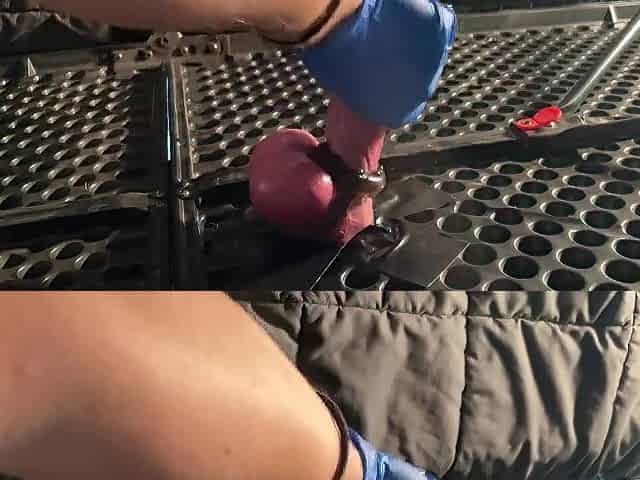 Milking table tugjob with rubber gloves.