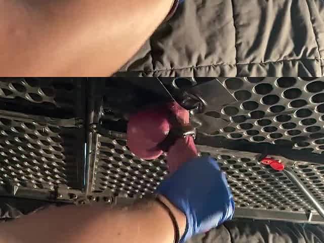 Handjob latex gloves, kink