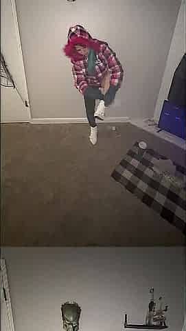 Red Leggings, Red Gloves, Black And Red Heels Masturbation