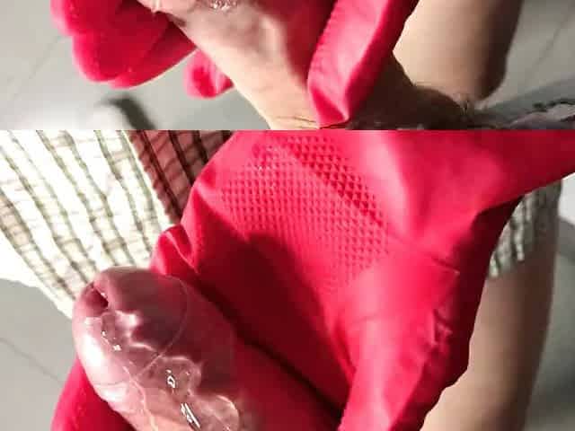 Bigtitted mature jerking dick wearing gloves, Bigtitted mature jerking dick wearing gloves with this lucky guy