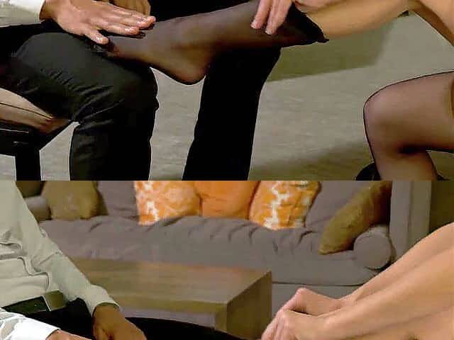 Cailey Taylor wears fishnet gloves and gives footjobs when she fucks