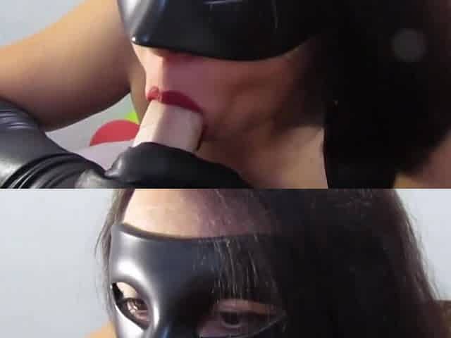HJ 19yo and mature give masked and gloves 3some cockwanking