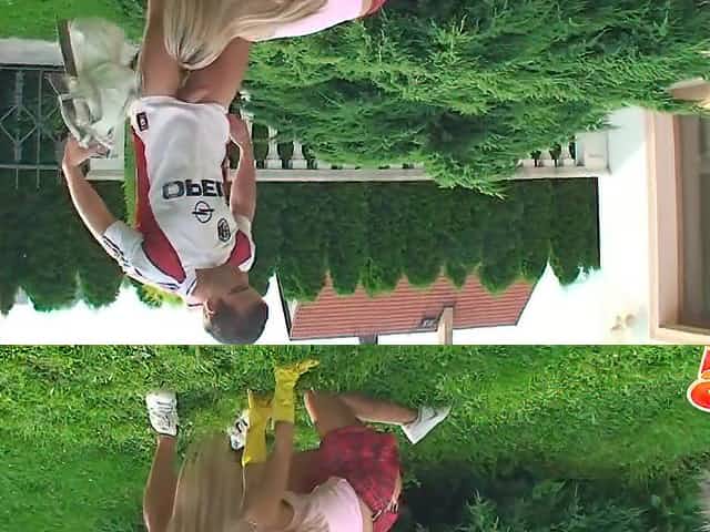 Golden-Haired female cop fucking in gloves and nylons