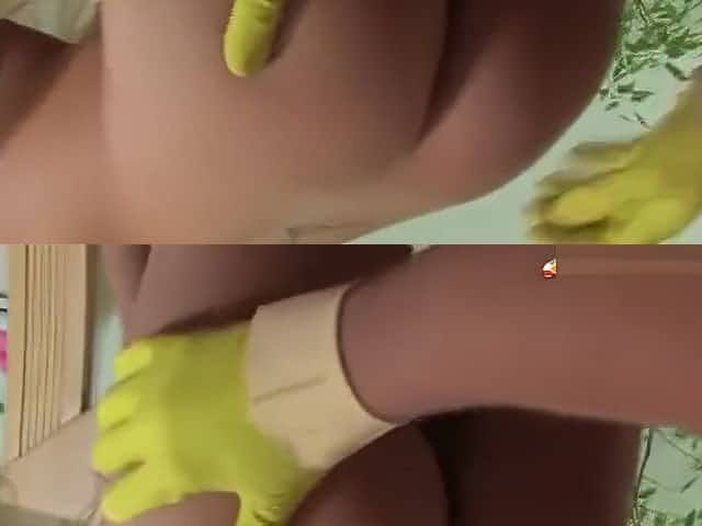 cleaning man fuck the girlfriend with rubber gloves