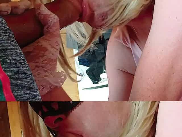 Hose Lover's Blow job and Sex, All Cum on Shiny Legs