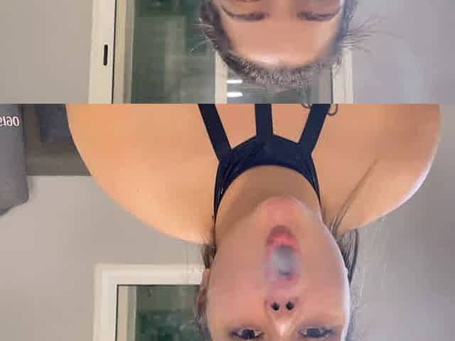 Rebecca Diamante Try on Blue Bodysuit and Black Latex Gloves Ita