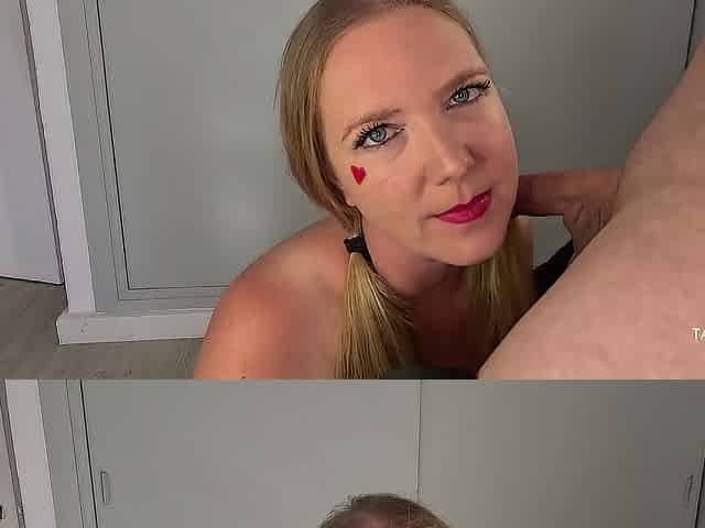 Peeing on Jens' tits while she gives me a cumshot with gloves