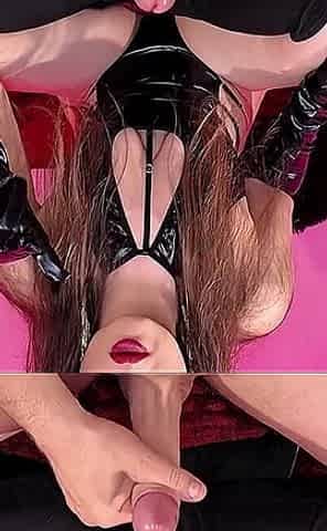 Brunette Amateur Gives Gloved Blowjob