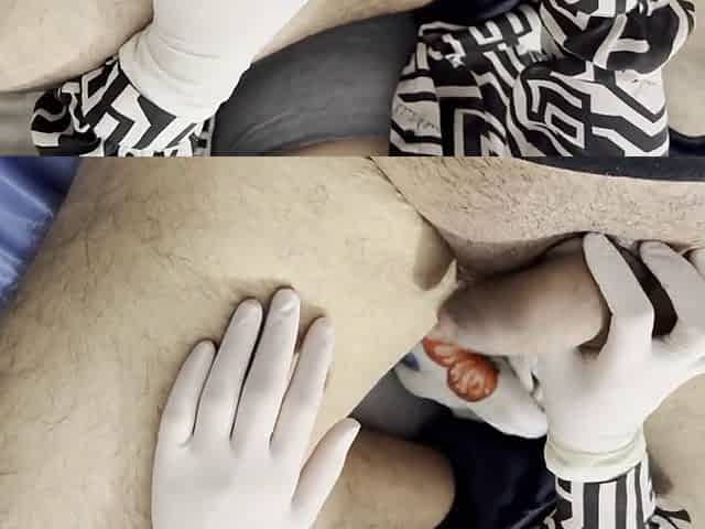 Doctor in White Gloves Masturbating My Monster Cock with Oil