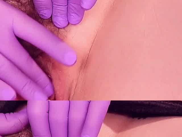 I caress my pussy in white medical gloves