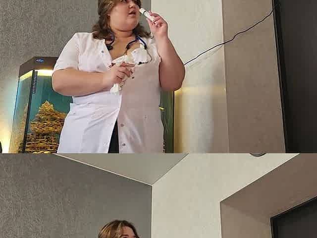 BBW nurse sucks cock, jerks off with gloves on and does tittyfuck