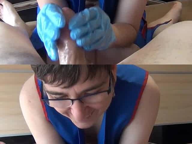 Latex medical gloves POV tugjob on large vibrator (teaser)